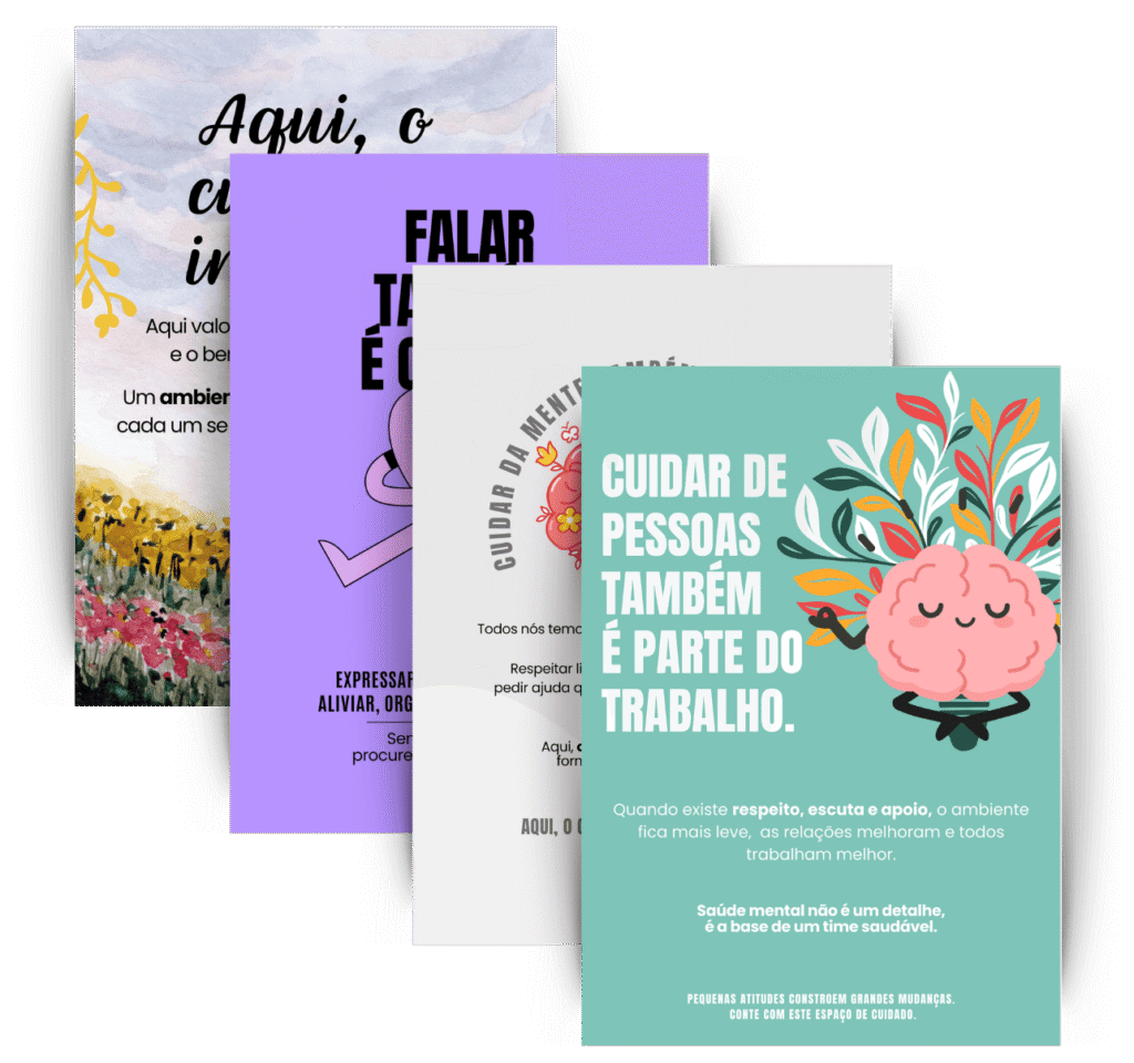 Um kit visual, ético e pronto para imprimir que ajuda empresas a promover saúde mental e fatores psicossociais no dia a dia — sem burocracia, sem conflito e sem complicação.