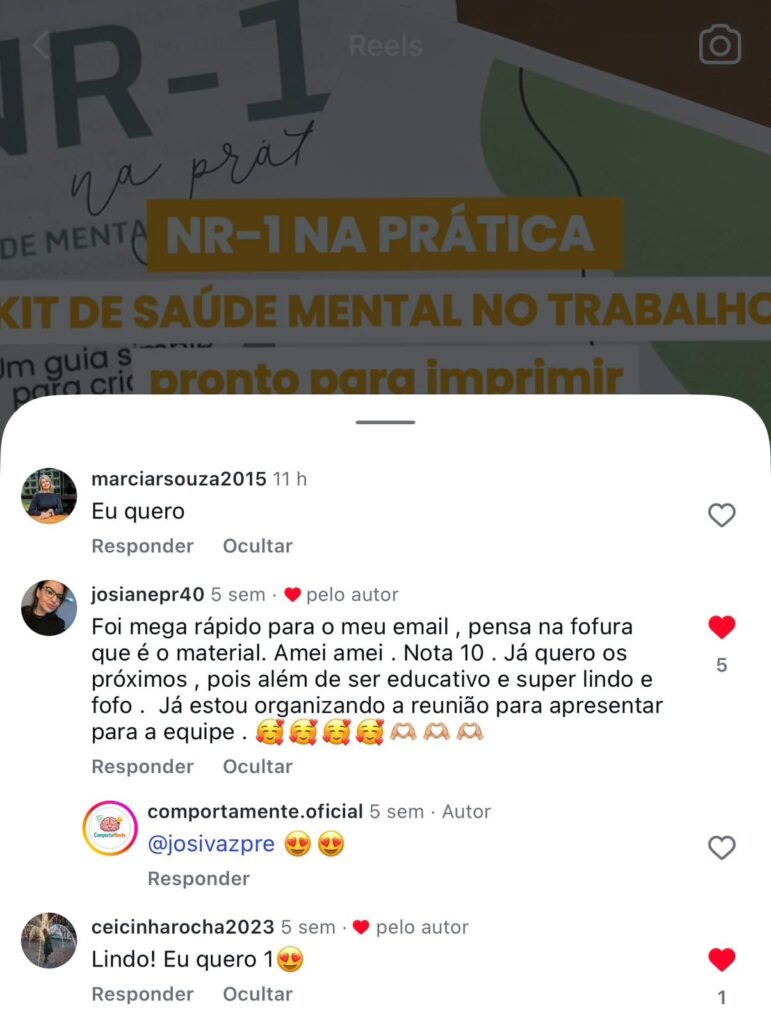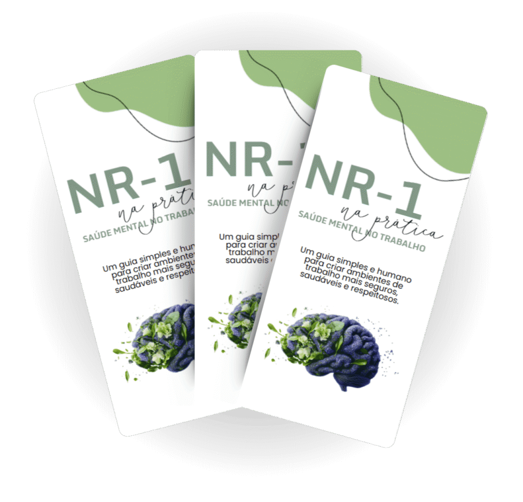 O NR-1 na Prática é um conjunto de materiais visuais, educativos e institucionais, criado para apoiar empresas e equipes a promoverem saúde mental no ambiente de trabalho de forma ética, leve e contínua. É um kit pronto para usar, pensado para o dia a dia real das organizações.
